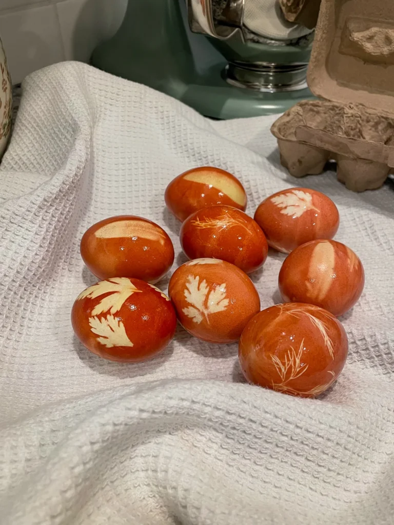 There’s something extra special about going back to simple, natural traditions during the Easter season. If you’re looking for a creative, chemical-free way to decorate eggs this year, dye Easter eggs naturally with onion skins to create the most stunning earthy tones, rich golds, deep ambers, and soft marbled browns. Paired with fresh herbs, each egg turns into a tiny piece of art. This natural dye method is inspired by Maja’s Recipes, and I absolutely loved making them!